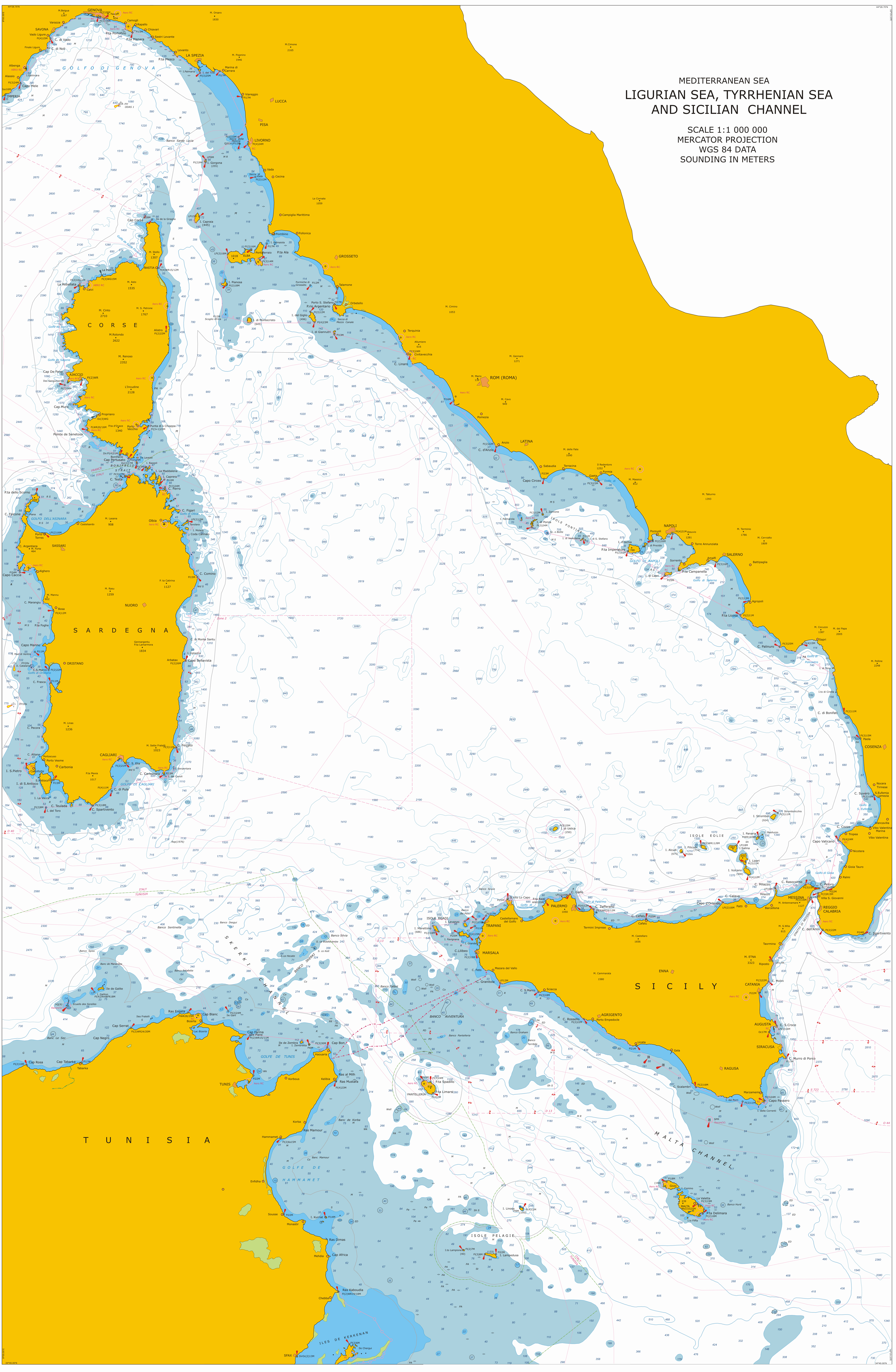 LigurianSea, Tyrrhenian Sea and Sicilian Channel